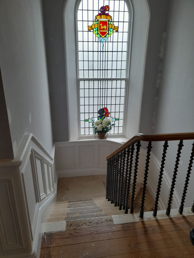 Oak paneling and a bench . The wood is gently stained and waxed, giving it a rich, deep color and smooth finish. The classic design blends traditional craftsmanship with elegance, creating a warm, luxurious atmosphere. The patterned grille adds texture, while the rounded edges of the bench highlight the precision of the work. A timeless, durable piece that enhances any interior