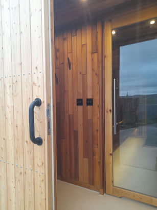 Mobile sauna with an audio system powered by an off-grid solar system.